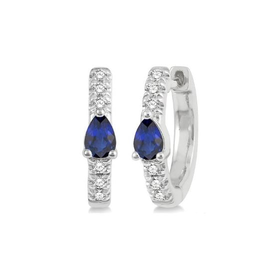 10K WG Pear Cut Sapphire and Round Cut Diamond Huggie Earrings