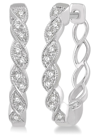 10K WG 1/6 Ctw Braided Pattern Round Cut Diamond Hoop Earrings