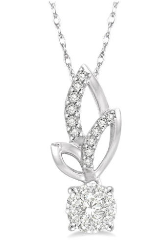 14K White Gold 1/6 Ctw Leafy Round Cut Diamond Lovebright Pendant With Link Chain