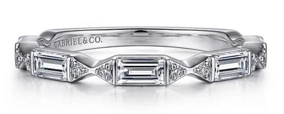 14k White Gold Channel Set Baguette and Round Diamond Anniversary Band