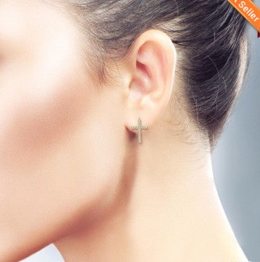10K YG .10ctw Diamond Cross Earrings