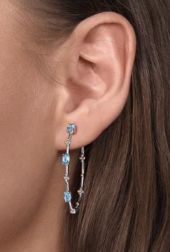 Sterling Silver Swiss Blue Topaz 40mm Hoop Earrings