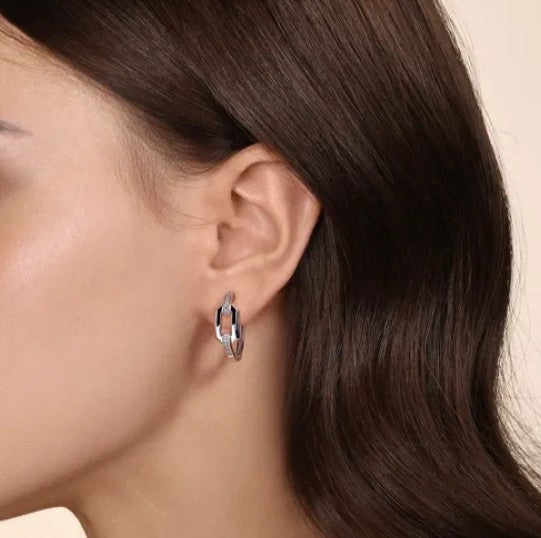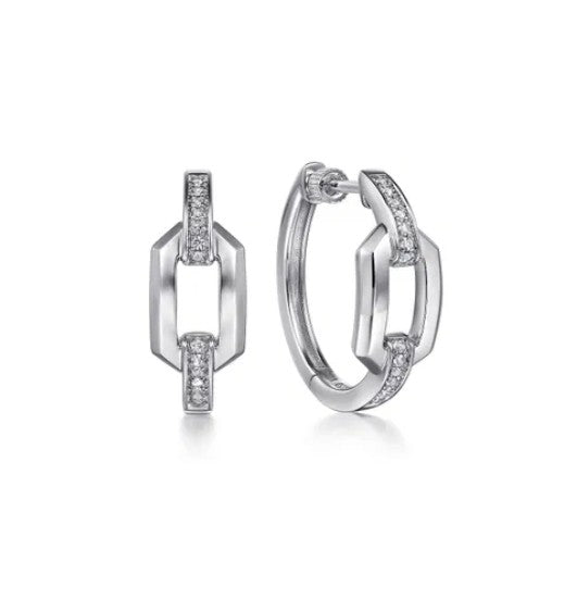 Sterling Silver White Sapphire Link Chain Hoop Earrings