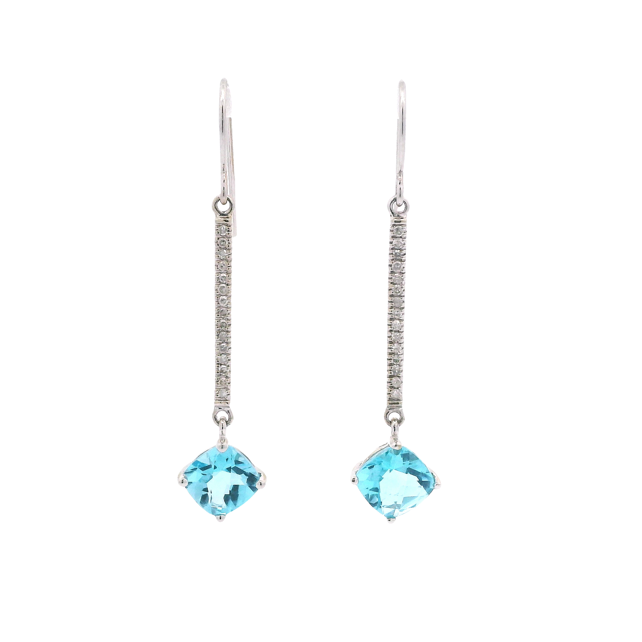 10k .15ctw Diamond & Blue Stone Dangle Earrings