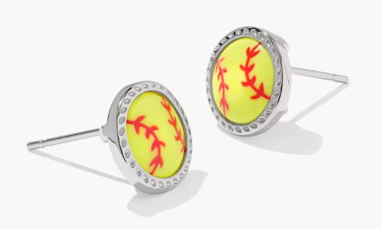 Softball Stud Earrings in Silver