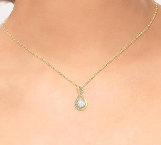 14K Yellow and White Gold with chain 1/5 Ctw Twisted Loop Lovebright Round Cut Diamond Pendant