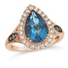14K Strawberry Gold® Ring | Deep Sea Blue Topaz™ 3 cts. | Chocolate Diamonds® 1/10 cts., Nude Diamonds™ 3/8 cts.