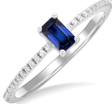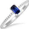 10K White Gold 1/10 ctw Petite 5x3 MM Emerald Shape Sapphire and Round Cut Diamond Precious Fashion Ring