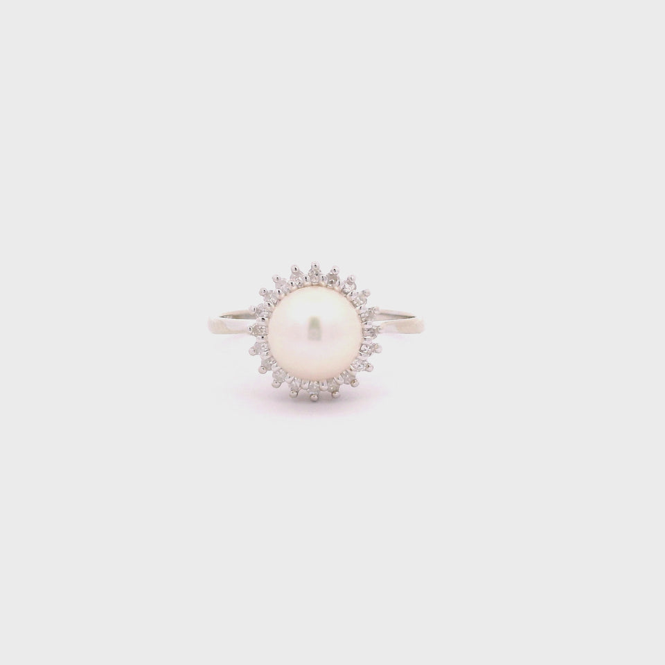 14k .10ctw Diamond & Pearl Ring