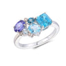 14K Vanilla Gold Ring with Blueberry Zircon Topaz and Diamonds