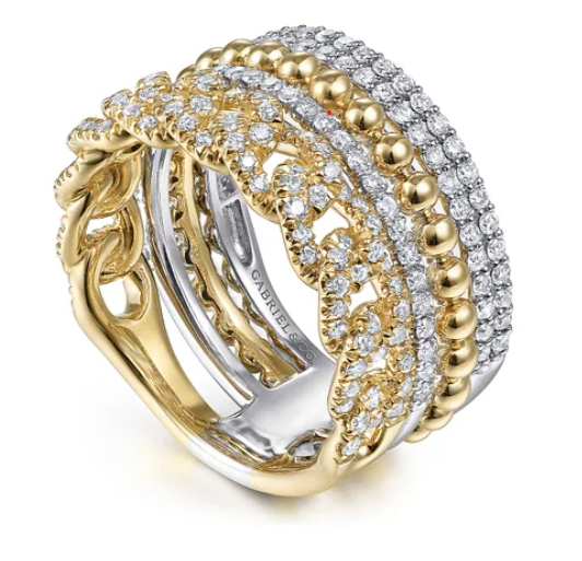 14k 1.0ctw Two Tone Bujukan Diamond Stackable Ring