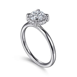 14k White Gold Hidden Halo Diamond Engagement Semi-Mount Ring