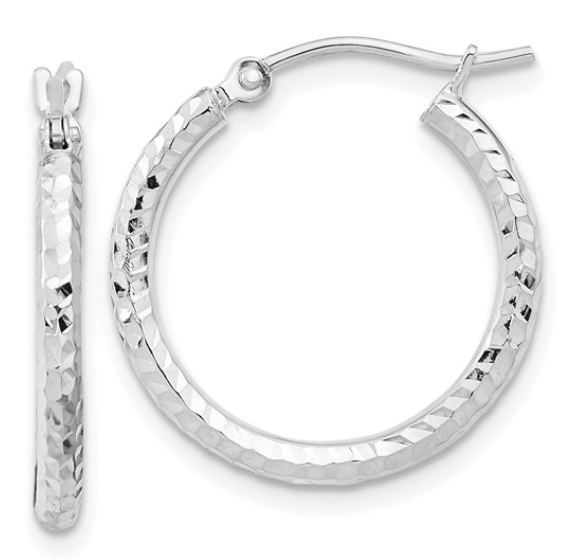 10K White Gold Diamond- Cut 2mm Round Tube Hoop