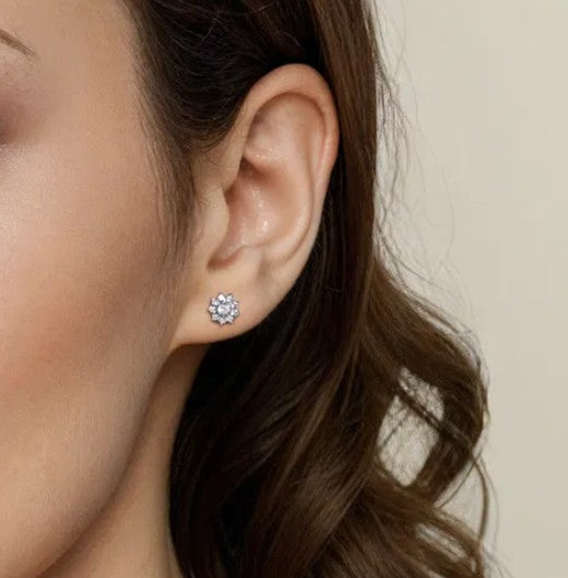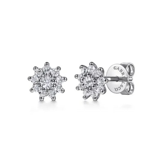 14K White Gold White Sapphire Cluster Stud Earrings