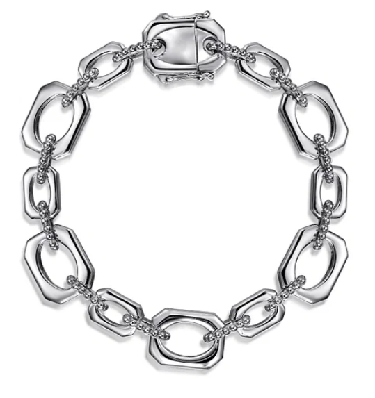Sterling SIlver Bujukan Elongated Octagon Link Chain Bracelet