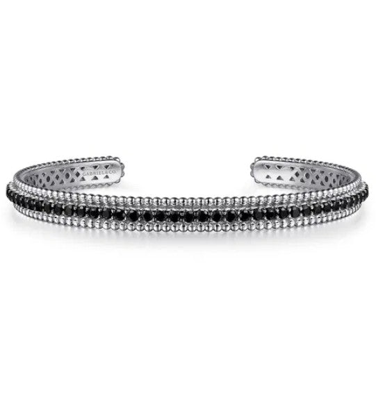 Sterling Silver Black Spinel Bead Cuff Bracelet