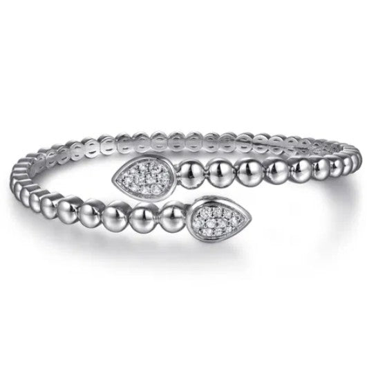 925 Sterling Silver Bujukan White Sapphire Bypass Bangle Bracelet
