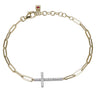 Sterling Silver Gold Plated CZ Paperclip Cross Bracelet