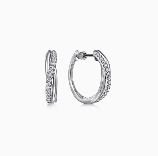 Sterling Silver Twisted 15mm White Sapphire Huggie Earrings
