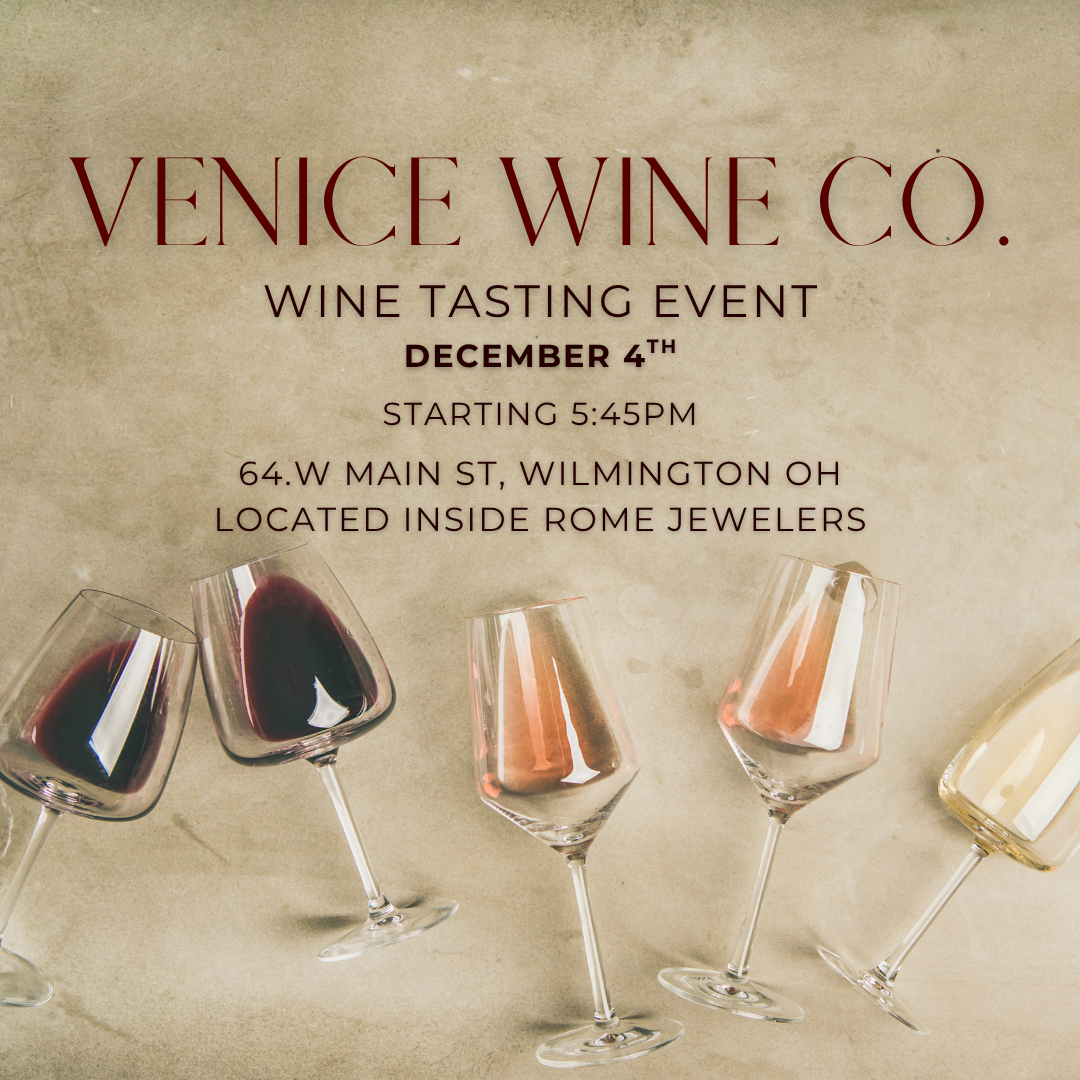 Join us on **Thursday, December 4th from 5:45 PM- 7:15PM** for our Wine Tasting hosted by Venice Wine! Details: Taste **4 amazing wines** plus a special **5th pour**!